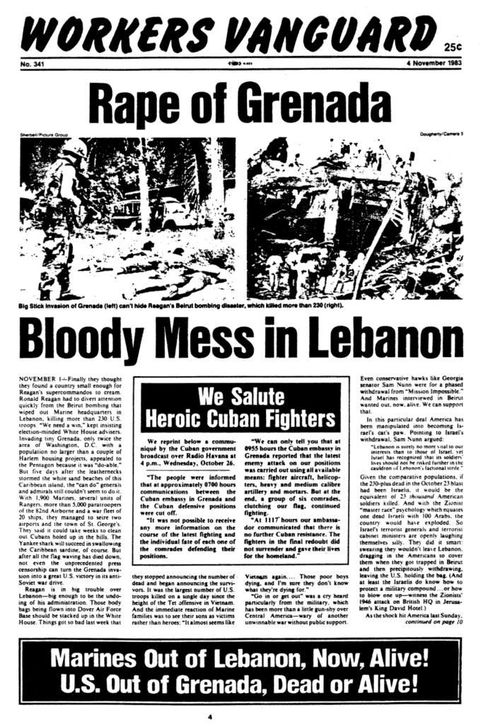 TB #2: Front page of Workers Vanguard No. 341, 6 November 1983