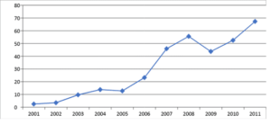 | 2000 | 2001 | 2002 | 2003 | 2004 | 2005 | 2006 | 2007 | 2008 | 2009 | 2010 | 2011 | |