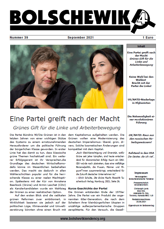 Bolshevik [deutsch: Bolschewik], die politische Zeitschrift der Bolschewistischen Tendenz (BT), hat ihren Namen von der Partei, die die erste und bis heute einzige erfolgreiche Arbeiterrevolution anführte – im Oktober 1917, ein Ereignis, das den Höchststand des internationalen Klassenkampfes darstellt. Die Zerstörung des sowjetischen Arbeiterstaates im Jahr 1991, nach fast sieben Jahrzehnten stalinistischer Fehlführung, stellte eine enorme historische Niederlage für die internationale Arbeiterklasse dar. Aber die strahlende Hoffnung aus den frühen Tagen des russischen Arbeiterstaates unter der Führung von Lenin und Trotzki erhellt immer noch den Weg zur Befreiung der Menschheit von der sich beschleunigenden Irrationalität der kapitalistischen globalen Unordnung.