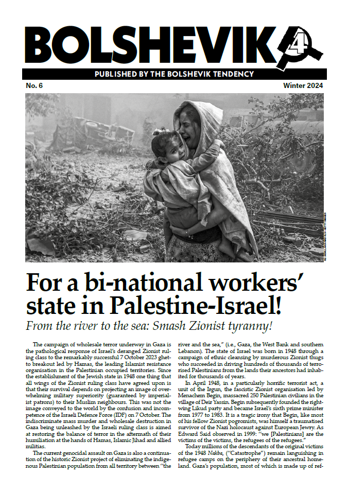 Most of the national questions posed in Lenin’s time have been resolved–the former colonies of the imperialist powers have generally achieved nominal political independence, without, of course, being emancipated from the imperialist world market. Many of the national questions which remain are particularly complex because they involve situations where two or more peoples are interspersed throughout a single territory (e.g., Northern Ireland, Cyprus, Lebanon, Israel/Palestine). Unlike the classical cases of oppressed nations addressed by Lenin, simply advocating the right of self-determination in such situations does not resolve the problem, because two (or more) hostile populations cannot both self-determine themselves on the same piece of land. Under capitalism the exercise of the legitimate right of self-determination by either population can only come at the expense of the other. Such a “solution” can only result in maintaining or inverting the existing relations of oppression. For nationalists this is not a problem–they are only concerned with the national rights of their own people. Workers Power adopts a similar criterion–it asserts that the right of self-determination applies only to “good” (that is, the currently oppressed) people.
