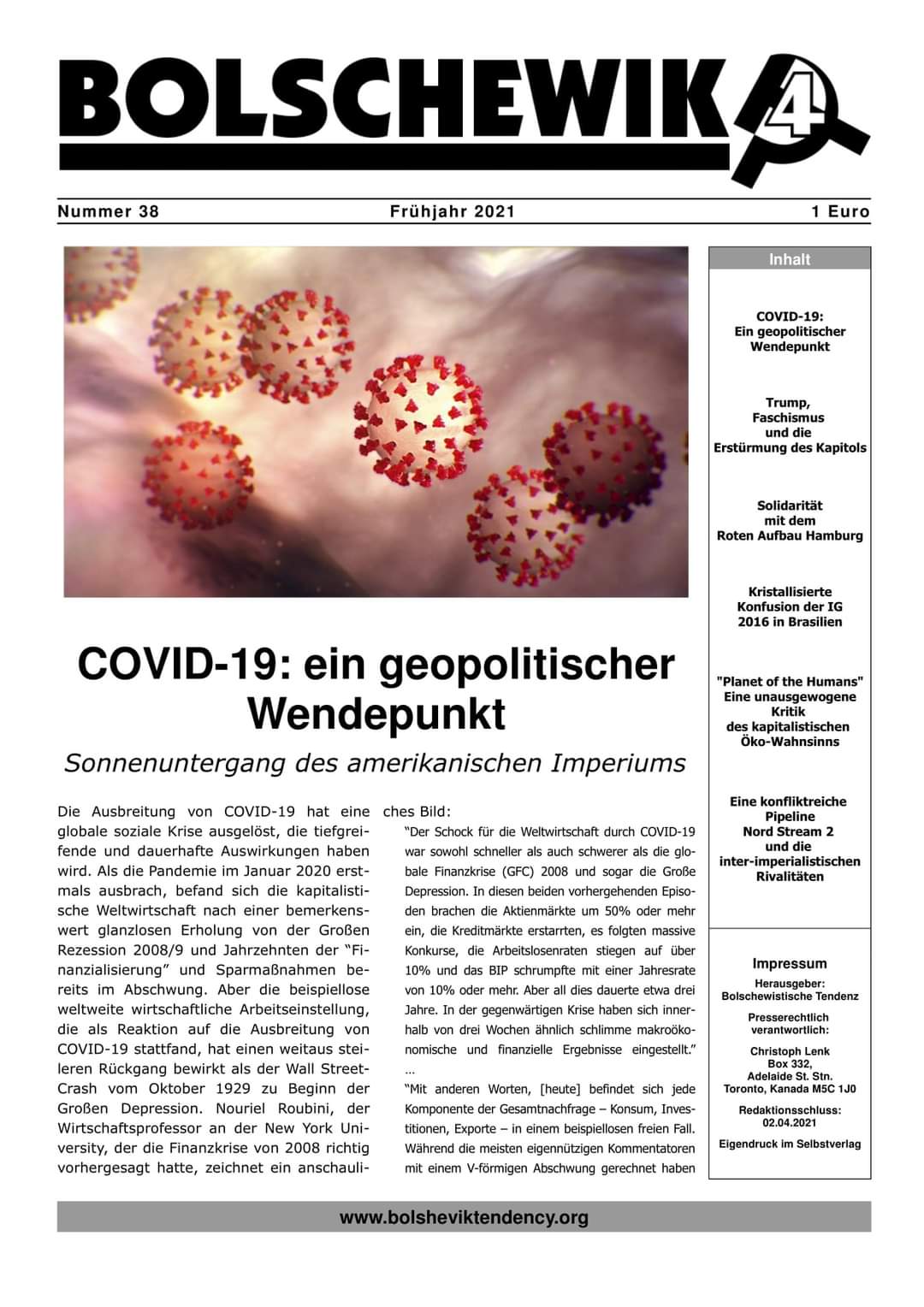 COVID-19: ein geopolitischer WendepunktTrump, Faschismus und die Erstürmung des KapitolsSolidarität mit dem Roten Aufbau HamburgZur Kapitulation der IG in Brasilien 2016“Planet of the Humans” – Eine unausgewogene Kritik des kapitalistischen Öko-WahnsinnsEine konfliktreiche Pipeline – Nord Stream 2 und die inter-imperialistischen Rivalitäten